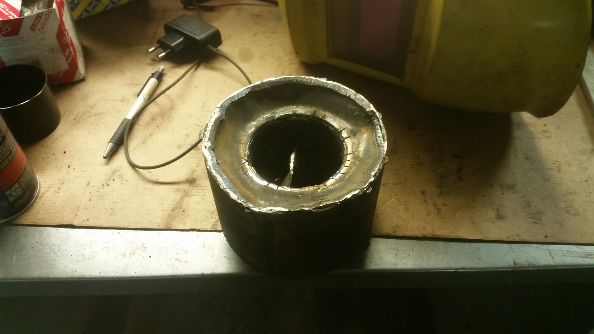Для прочности изделия наварите снаружи полученного пламегасителя дополнительный слой металла, толщина которого должна составлять 0,8 мм. По такому же слою дополнительно наварите на торцовых поверхностях устройства.