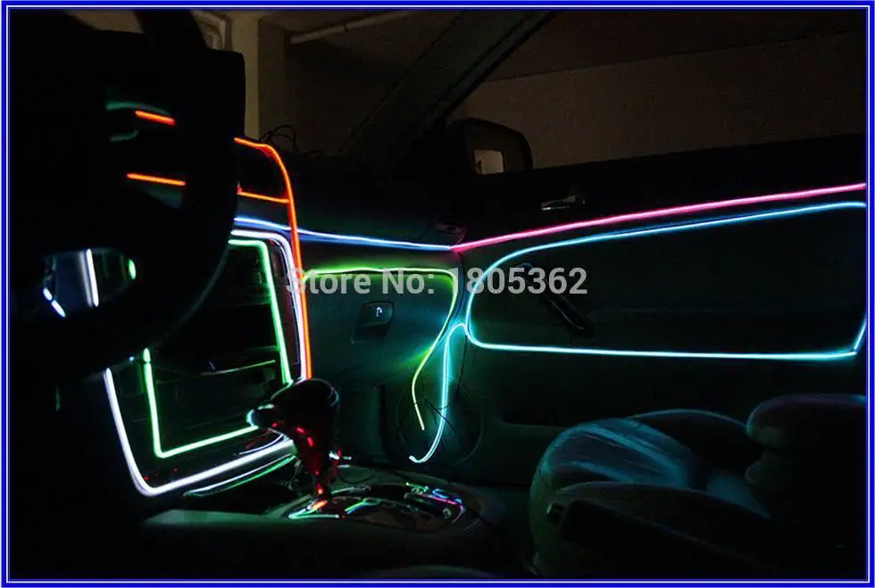 Чаще всего светящуюся линию крепят по щитку, нижнему контуру сидений, на дверях.