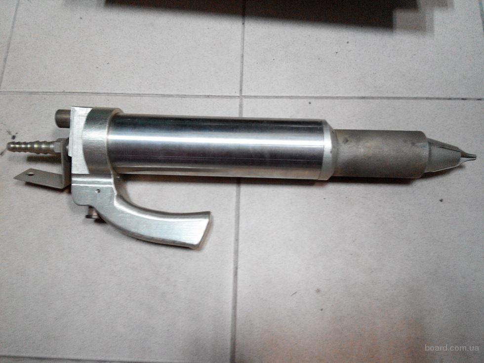 - Пневмопистолет плотно прижимается к отверстию. Важно устанавливать его ровно, перекосы недопустимы.