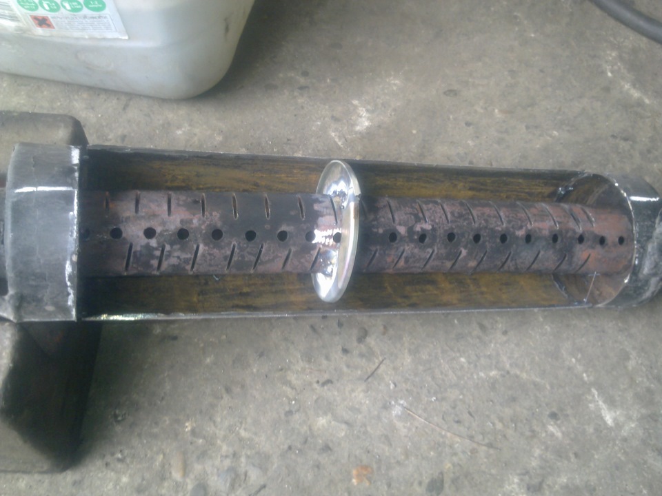 - вырезаете болгаркой часть банки штатного глушителя и вырезаете все его внутренние элементы;