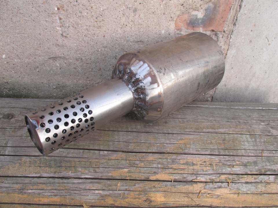 Отрезаем концы так, чтобы она поместилась между входным и выходным отростками, которые мы предусмотрительно оставили. Размещаем трубу между ними и привариваем ее при помощи сварки. Соединение производится по всей ее окружности. После этого концы трубы привариваются к выходным отверстиям. Пустоты не занятые вваренной трубой заполняются термостойким негорючим материалом. Можно при помощи металлических листов разделить пустоты на секции, и заполнить каждую из них определенным наполнителем. Важно при этом, чтобы набивка была как можно плотнее. После этого осуществляется заваривание корпуса. При осуществлении этой работы нужно быть предельно аккуратным и осторожным, чтобы не оставить пропалин и пропусков. На завершение тюнинга выхлопной системы производится приваривание выходного сопла.