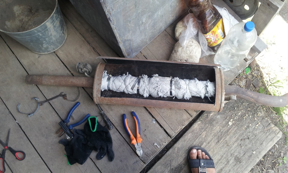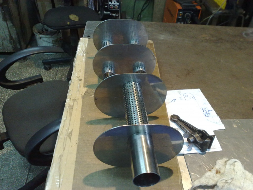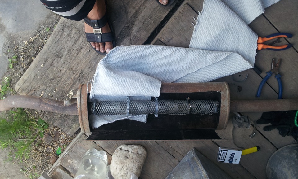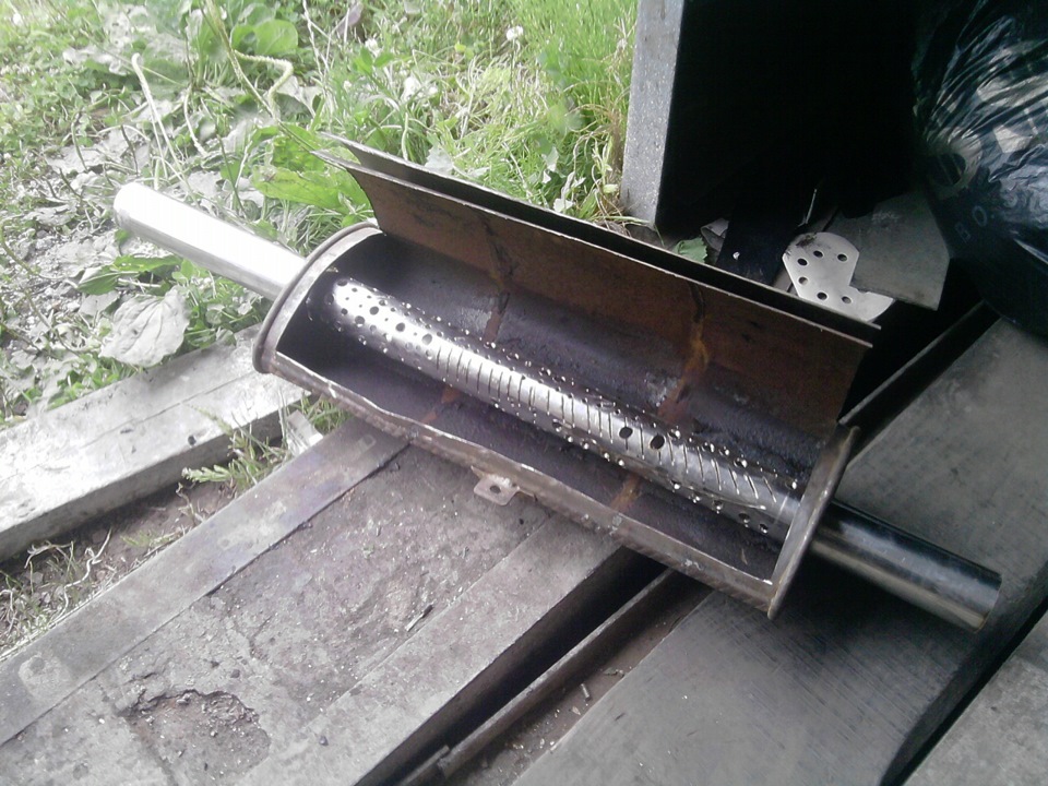 Для воплощения задумки нам потребуется следующее: глушитель, кстати, подойдет даже старый штатный, пара разнодиаметровых труб, сварка, огнестойкий изоляционный материал, лист нержавеющей стали, поглотитель шума, ваше желание и терпение.