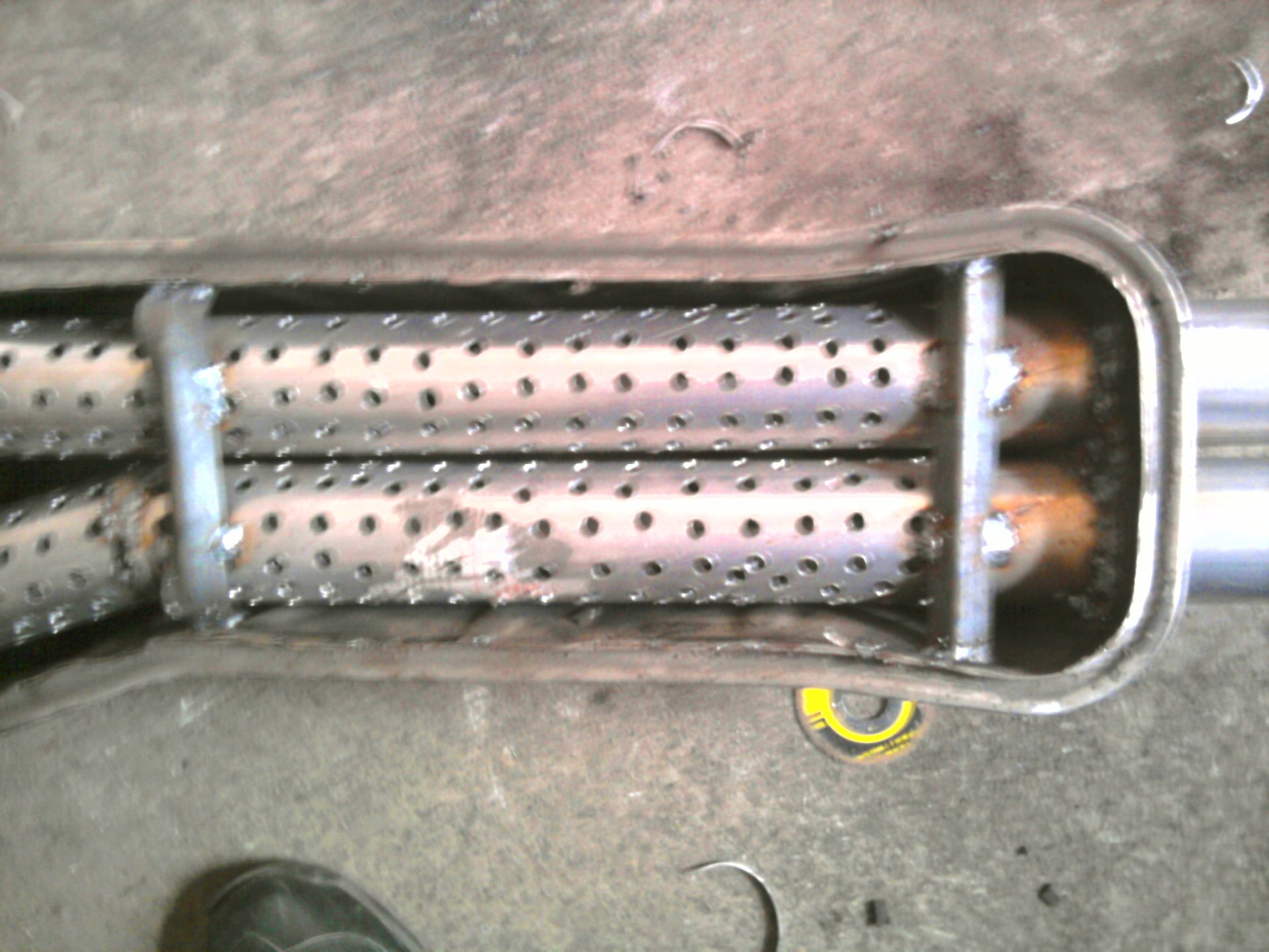 Для завершения работ необходимо заварить вырезанное отверстие, и прямоток для автомобиля можно считать готовым.