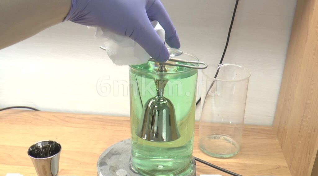 - Процесс происходит до тех пор, пока не будет удален хром. Затем объект промывают, а химические вещества следует утилизировать профессионально.