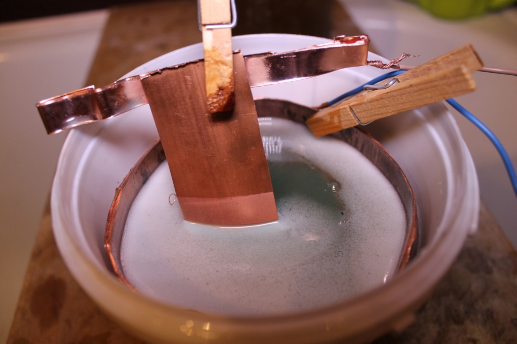 Затем состав нужно выдержать под током в течение трех с половиной часов. Если расчеты произведены верно, то электролит станет темно-коричневым. Обесточив состав, его нужно оставить на одни сутки в каком-нибудь прохладном и темном месте.