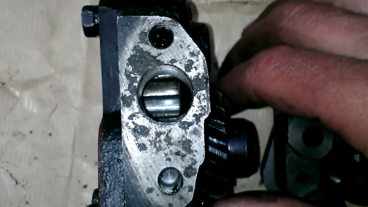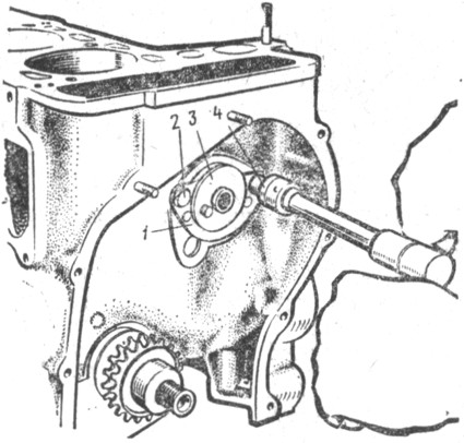 Осторожно снимите и замените масляный насос, не снимая крышку кулачка. снимите маслопроводы и болты, удерживающие крышку масляного насоса, снимите стопорное кольцо, крепящее ведомую шестерню к валу насоса, затем шестерню.снимаем шпонку, а затем верхние болты, крепящие корпус насоса к картеру.