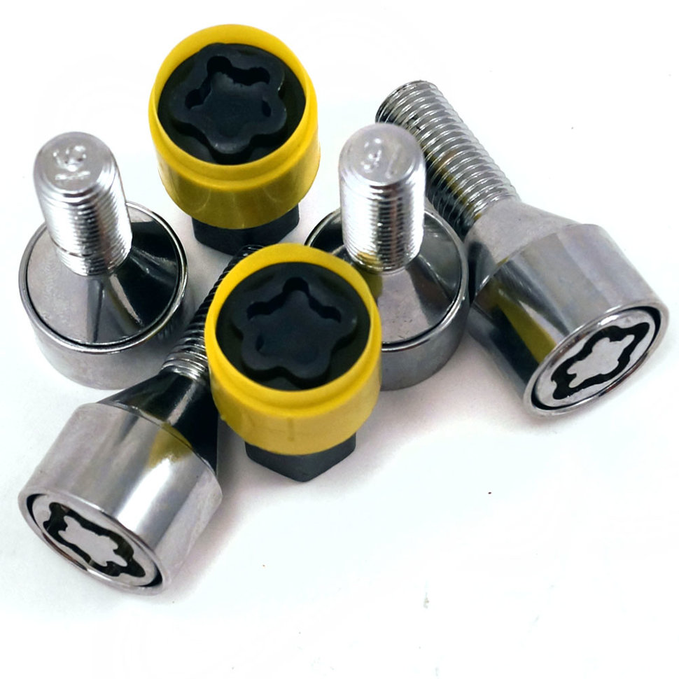 Это набор гаек или болтов, которые с колеса скручиваются только специальным ключом, входящим в комплект. Болт с головкой необычной конфигурацией устанавливают на колесо вместо одного или нескольких стандартных. После его установки открутить колесо без оригинального ключа невозможно.