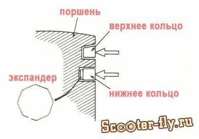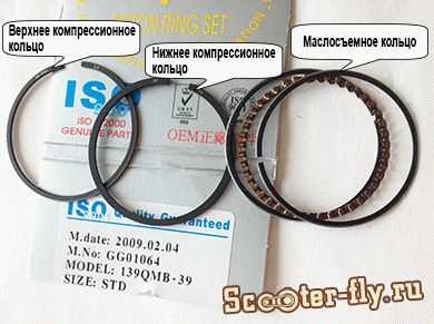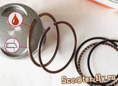 Итак, если Вы столкнулись с необходимостью замены поршневых колец на скутере, причем помимо основной проблемы то, что их нужно менять, существует и другая – это как правильно поставить кольца на поршень. Нельзя просто взять любое кольцо и поставить в любую из канавок» на поршне. Нужно понимать какое кольцо является верхним компрессионным, какое нижним компрессионным, а также как правильно поставить маслосъемное кольцо.