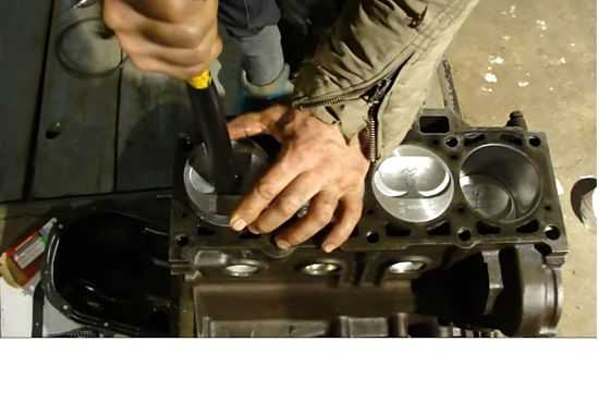 Для более правильной и легкой установки поршня на место, коленчатый вал установите в такое положение, при котором поршень должен быть в нижней точке.