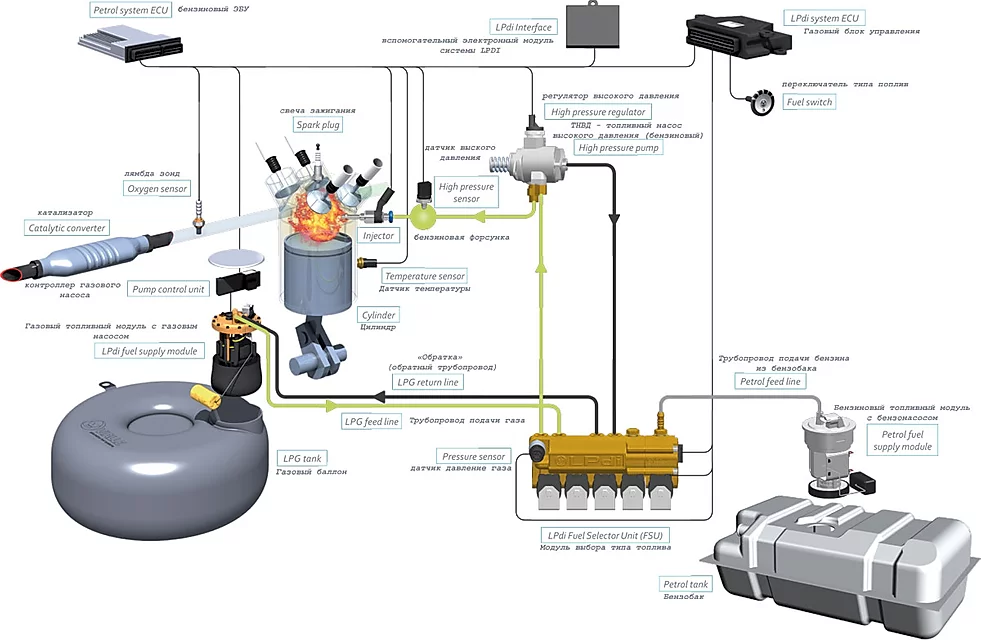 Баллон стоит, редуктор установлен, трубки тосола подключены, магистраль заправки и подачи газа замкнута.