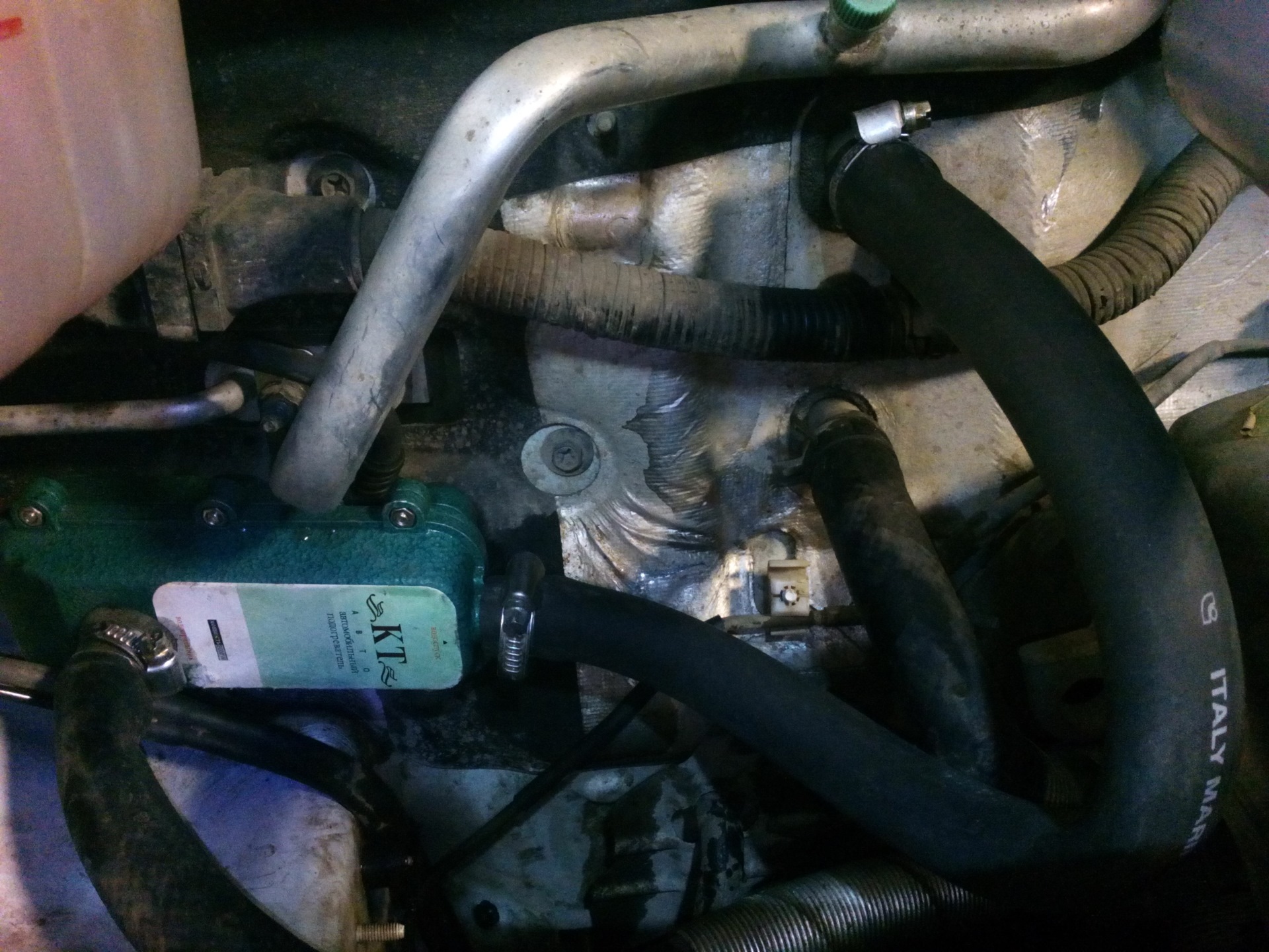 Подача ОЖ: в сливное отверстие блока двигателя через штуцер.