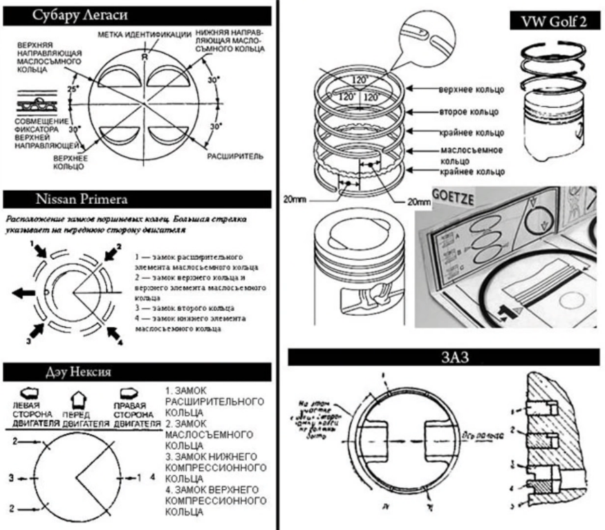 Простая, но очень важная информация о правильной установке поршневых колец. Внимательно изучите картинки и прочтите приведенные ниже инструкции для лучшего понимания.