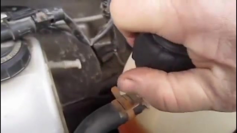 - В момент, когда появится жидкость из шланга или штуцера, быстро наденьте шланг на место и прикрутите всё как было.