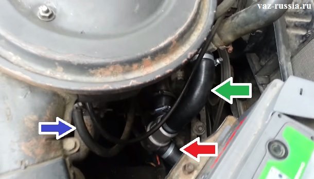 - Первый метод является универсальным для машин, у которых можно отцепить шланг, что подогревает дроссельный узел или карбюратор. Эти действия можно сделать на большей части автомобилей ВАЗ.