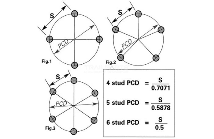 Для диска с четырьмя болтами параметр PCD можно узнать, умножив расстояние между центрами крепежных отверстий на коэффициент x1,414, то есть используется формула: X*1,414.