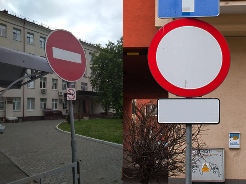 Знаки «Не въезжайте» обычно показывают встречное движение, подразумевая, что движение будет приближаться к водителю. Существует высокий риск столкновения, если водители выезжают на выделенную полосу движения.