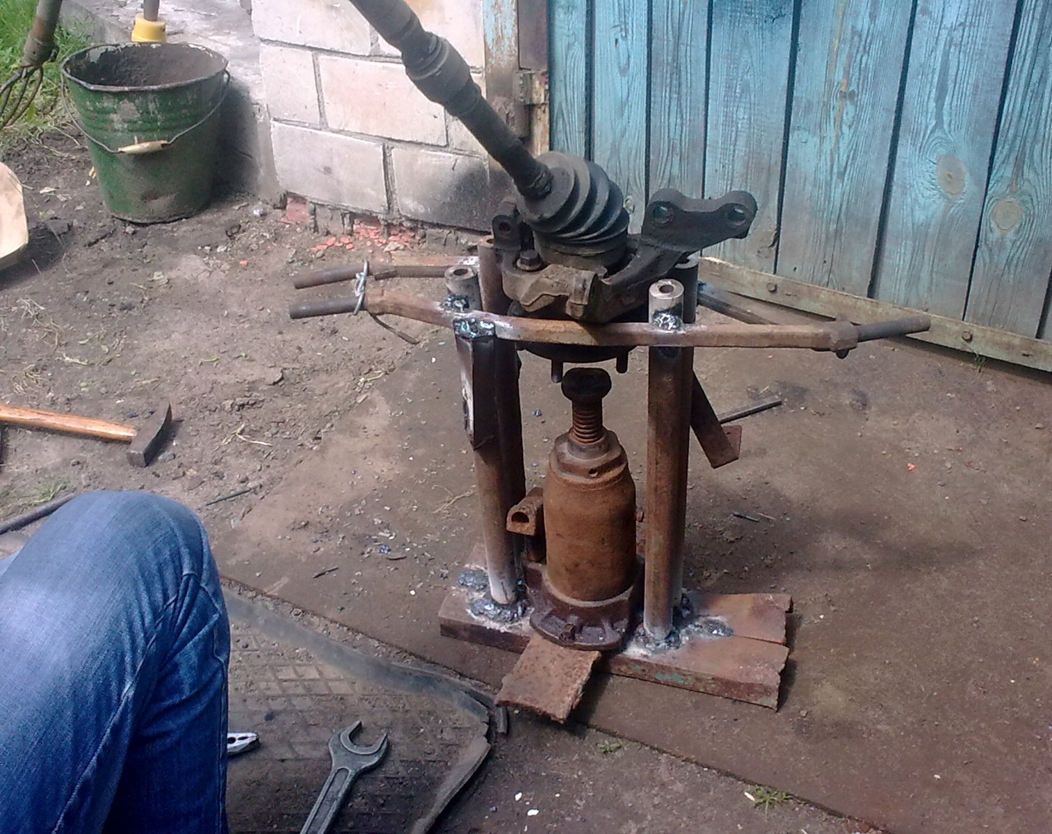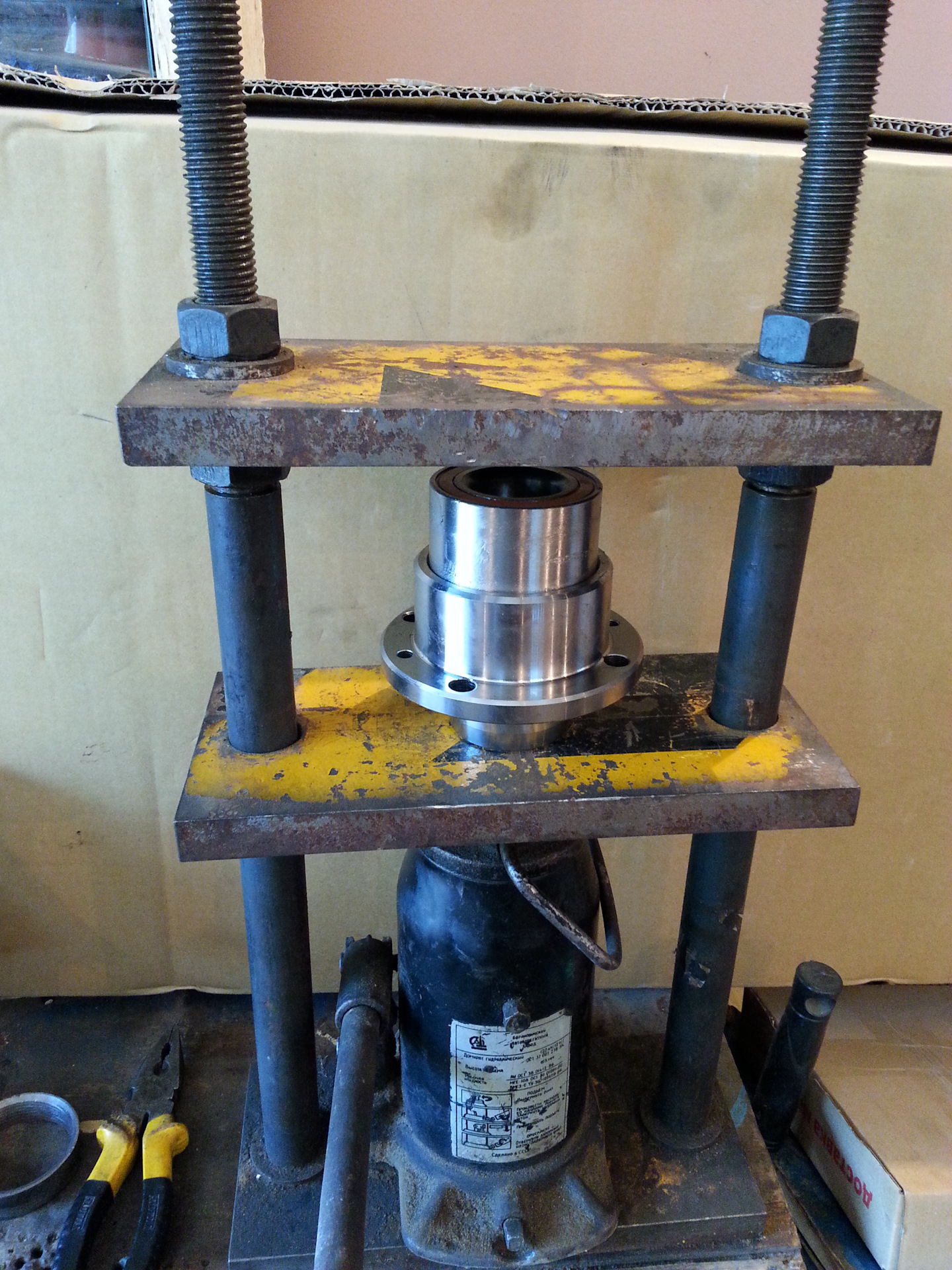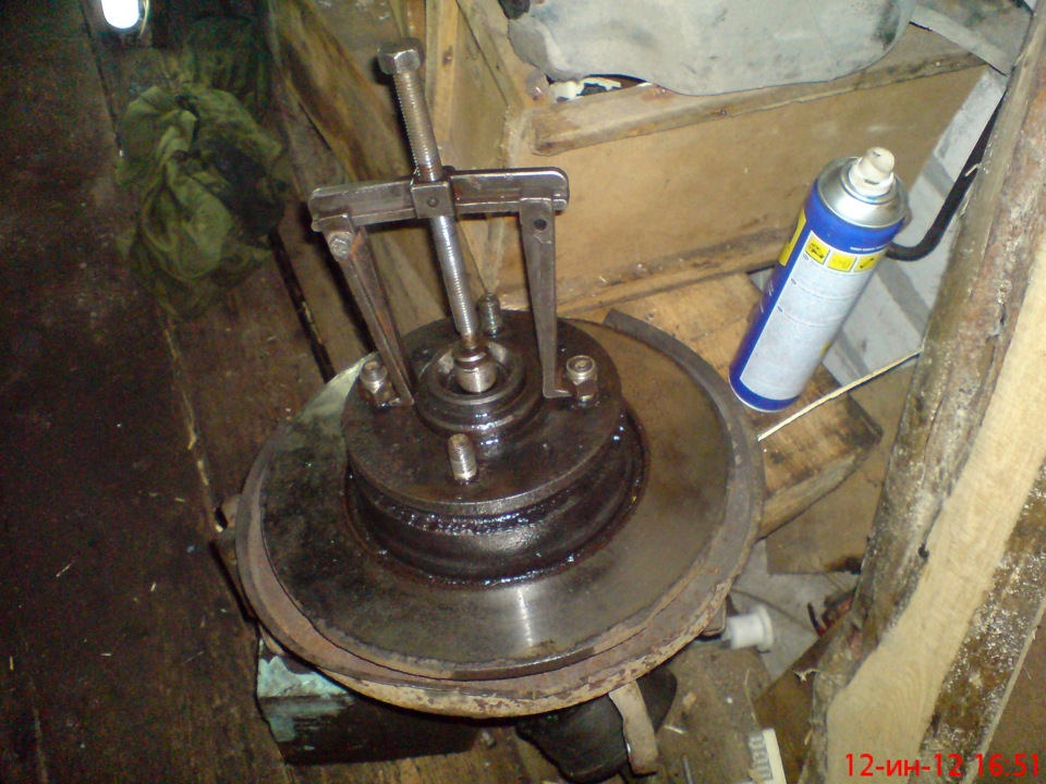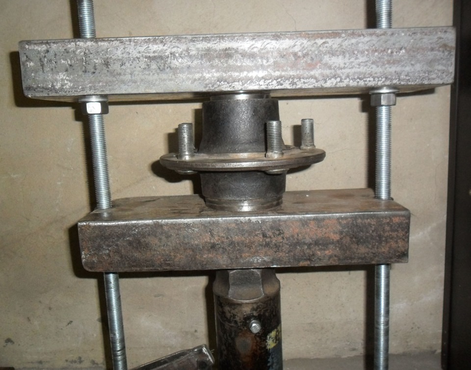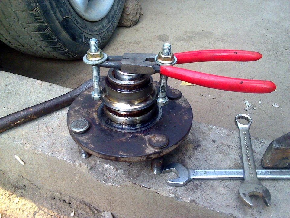 Первый метод предполагает использование специализированного инструмента: съемника ступицы и подшипников, приспособы для выпрессовки и запрессовки. Подобный механизм можно соорудить своими руками.