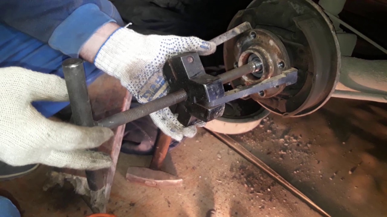 - Специальным съемником выпрессовываем подшипники со ступицы.