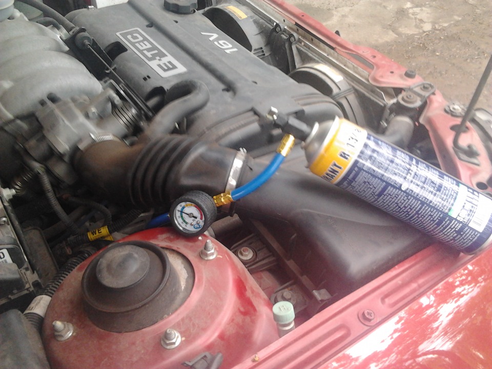 Заправка кондиционера — это просто процесс добавления в систему большего количества хладагента. Он должен быть на определенном уровне, не слишком мало, не слишком много, чтобы работать должным образом. Комплект для заправки на самом деле представляет собой банку с хладагентом R134a с небольшим количеством герметика для утечек, шланг, который соединяет его с вашим автомобилем, и датчик для измерения его количества в вашем автомобиле.