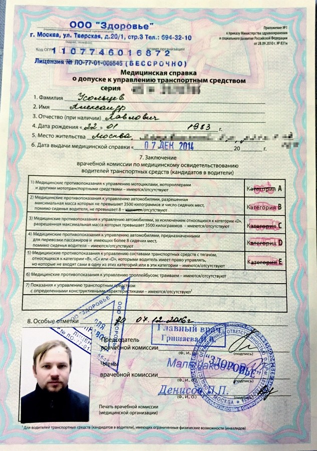3. Пройдите медицинскую комиссию, соответствующую нужной категории прав.