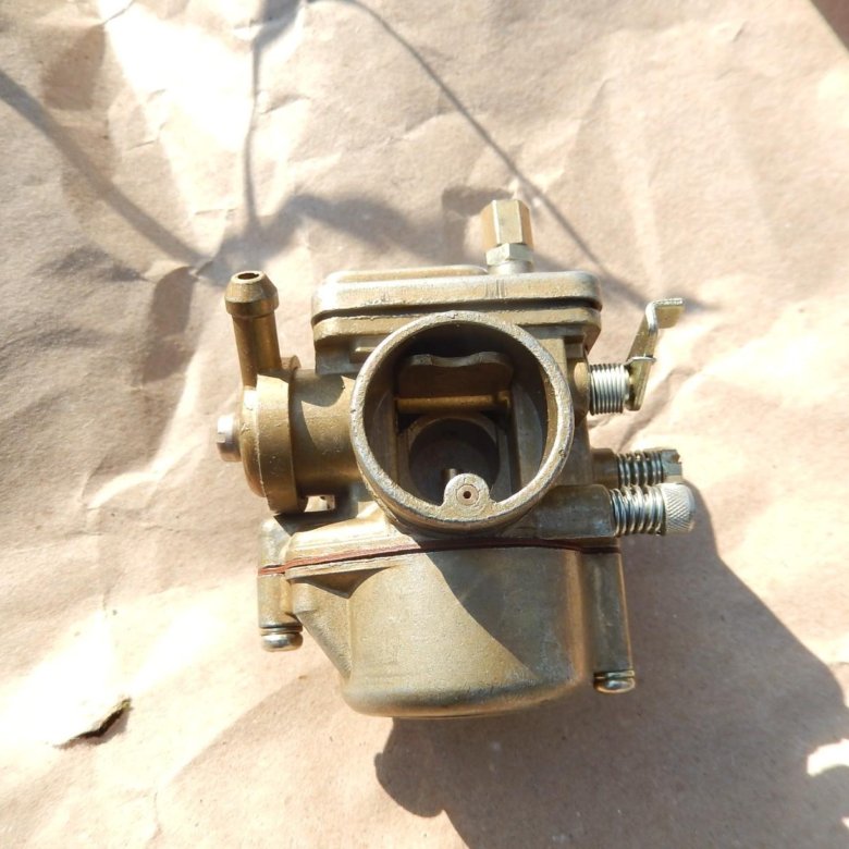 - Отсоединить верхнюю часть карбюратора, открутить болты. Клапан подачи топлива промывается, а жиклер продувается воздухом. Никакую деталь нельзя протирать тряпочкой, волокна повреждают стенки корпуса, а именно хромированное покрытие.