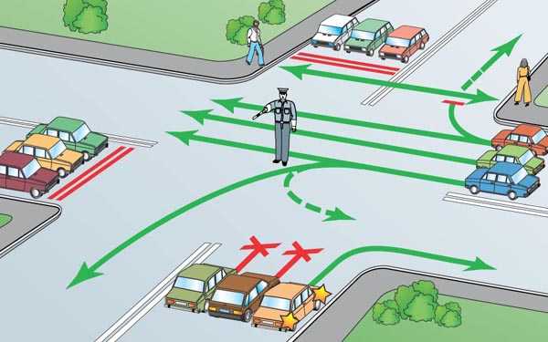 Это еще называется правилом рукава — если вы мысленно можете въехать в рукав регулировщика, то можете начинать движение. Стишок для запоминания — в рукав не попадаешь — сигнала ожидаешь