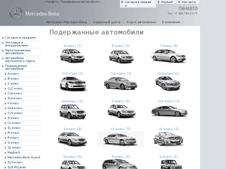 Компания имеет в своем модельном ряду практически все возможные типы кузова, начиная от седанов, заканчивая минивэнами. В их числе седаны бизнес класса, минивэн R-Class, который не имел успеха и был снят с производства. Зато востребованными стали внедорожник гелендваген G-класса и средний кроссовер M-Class, к которому присоединились еще и GL класс и компактный GLK.