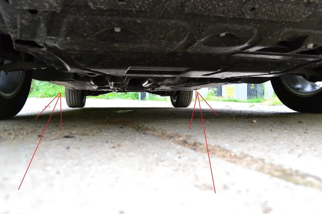 Желательно провести замеры в нескольких местах. Например, от поверхности, на которой стоит автомобиль, до защиты двигателя, осей. Иногда рационально начинать замеры просвета до бампера.