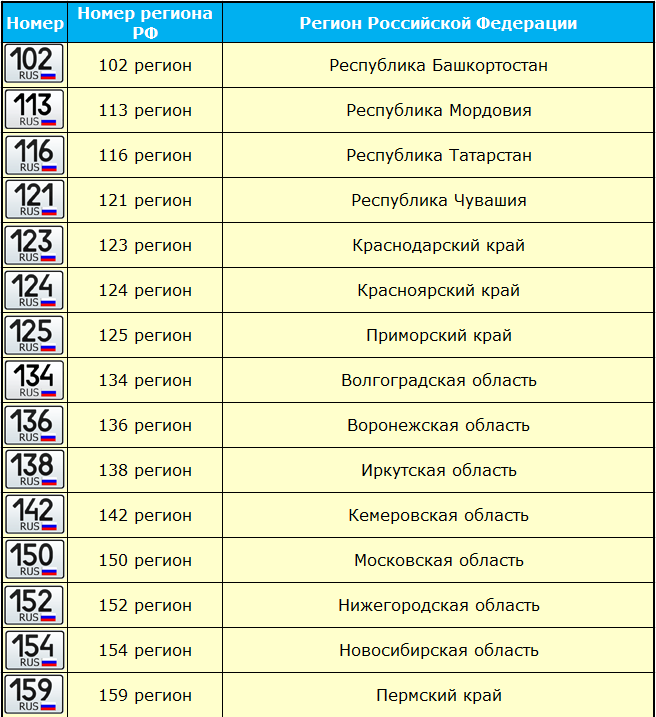 Номер автомобиля состоит из серии и номера, а также кода региона, в котором транспорт зарегистрирован. На этой странице вы найдете таблицу со списком кодов регионов на автомобильных номерах в России.