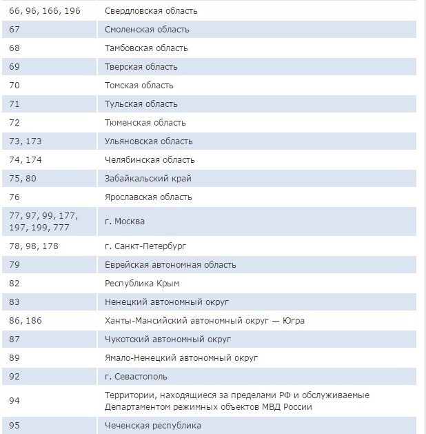 - Коды регионов на автомобильных номерах России