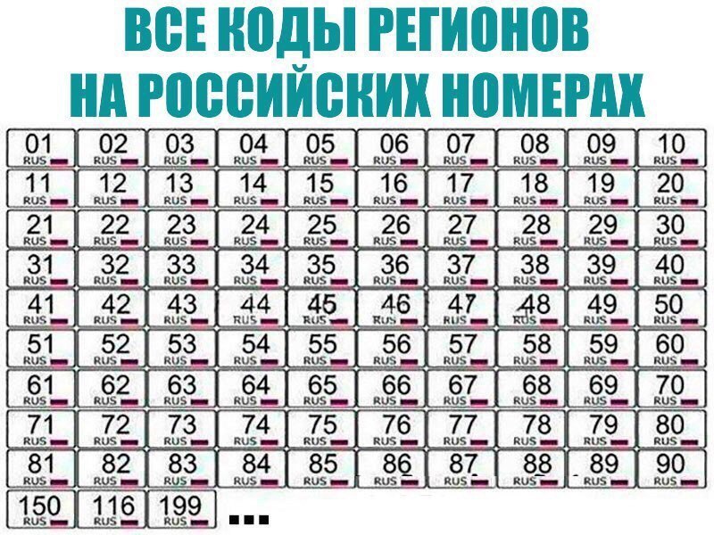 Коды регионов на автомобильных номерах России