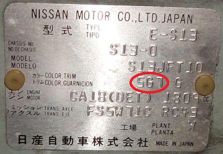 - Nissan – табличка с вин — кодом, из которой Вы узнаете код краски авто, находится на передней левой или правой стойке, под капотом, под сиденьем.