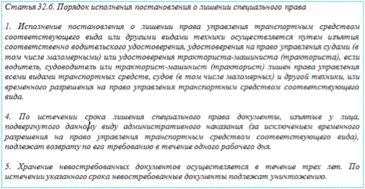 Новшеством последнего времени является то, что представитель ГИБДД не должен отбирать у нарушителя водительское удостоверение — решение о лишении прав принимается на судебном заседании. Нужно иметь в виду, что отсчет периода, на который водитель лишится прав, начнется после сдачи им удостоверения.
