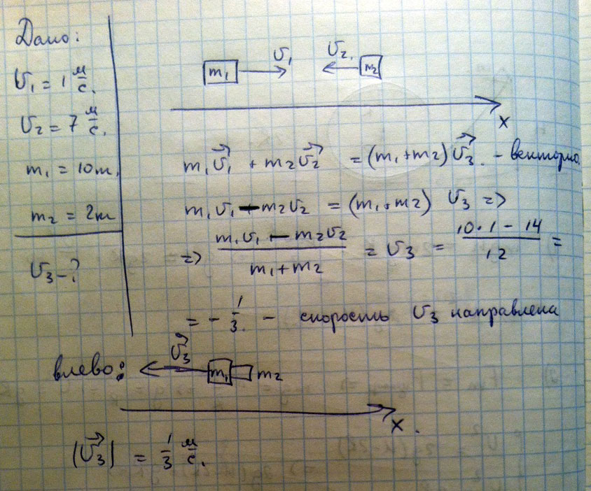 Ну а более простым решение было бы, если бы мы просто нашли среднее арифметическое скоростей, ведь точка, про которую нас спрашивают, лежит по центру между точками приложения векторов скоростей и , при этом не забываем о векторном сложении скоростей, берем скорость со знаком «минус»: