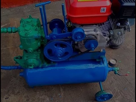 В нашем случае за основу берётся компрессор автомобиля ЗиЛ-130, баллон из-под пропана и двигатель на 2-3 киловатта. Именно такие составляющие мы приводим в виду их доступности в нашей стране и по той причине, что компрессор от ЗиЛа конструктивно для нашей переделки наиболее подходящий.