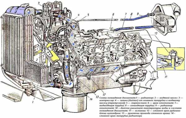 1. вход — выход охлаждающей жидкости. 2. сапун — резервуар системы смазки. 3. коленвал. 4 швеллер основание. 5 сливная пробка.