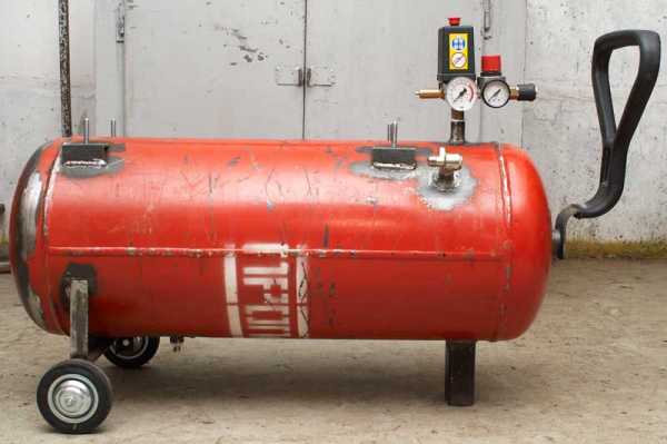 - Ресивер. Создается из металлической емкости средних размеров. Такую конструкцию комплектуют манометром, а также регулятором давления, который устанавливается на выходе. На входе в резервуар устанавливается узел, оборудованный редуктором.