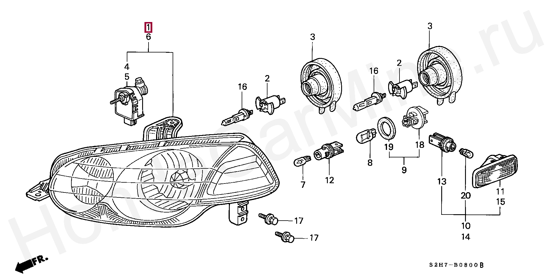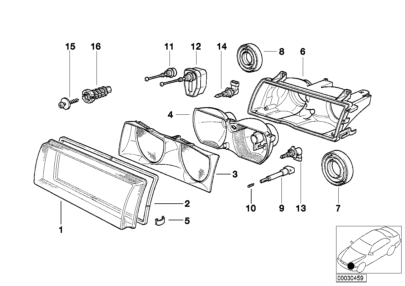 Содержит все компоненты фары – кабель, отражатель, лампу и т.д. Устанавливается в кузов автомобиля, защищает лампу от перегрева, влажности и механических повреждений. Изготавливается из термопластика.