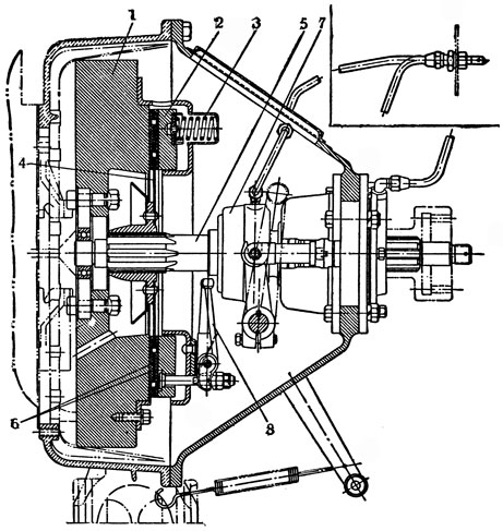 Муфты этого типа действуют в масляной ванне на трущихся поверхностях.