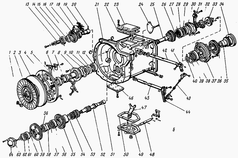 Механизм сцепления позволяет кратковременно разъединять двигатель и коробку передач, а затем плавно их соединять. Элементы механизма заключены в картер сцепления, который крепится к картеру двигателя.