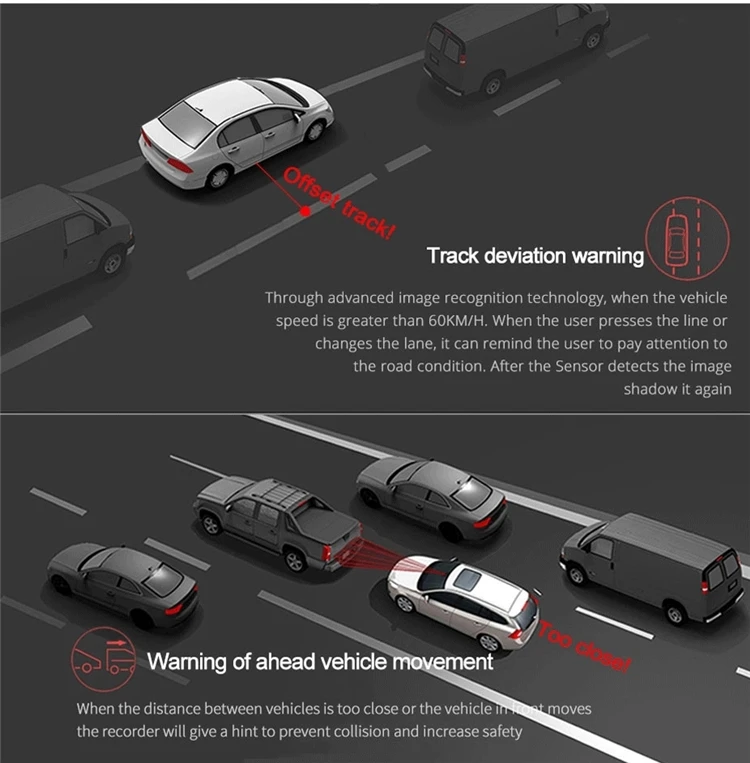 Видеорегистратор – уже не тот… Он больше не может только смотреть за движением… Теперь ему под силу гораздо больше! Например, благодаря системе FCWS, водитель будет предупрежден звуковым сигналом о том, что слишком близко приблизился к впереди движущемся авто. То есть данная система позволяет соблюдать «правильную» дистанцию с целью предотвратить столкновение. А система LDWS, чей синоним безопасность, не позволит водителю нарушать переделы его траектории движения (если водитель уснул за рулём, система звуковым сигналом разбудит его, тем самым оповещая, что он переместился со своей линии на другую). Более подробно читайте ниже.