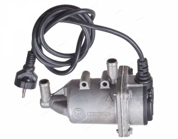 После включения в электросеть встроенный в корпус подогревателя ТЭН начинает прогреваться. Параллельно стартует электропомпа, отправляя в каналы теплый антифриз через выходной патрубок. Сквозь входное отверстие к ТЭНу поступает от блока цилиндров прохладная жидкость. Таким образом по замкнутому контуру осуществляется переток.