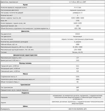 Π’Π΅Ρ Π½ΠΈΡΠ΅ΡΠΊΠΈΠ΅ Ρ Π°ΡΠ°ΠΊΡΠ΅ΡΠΈΡΡΠΈΠΊΠΈ ΠΠΈΠ²Π° 2131 Π²ΠΊΠ»ΡΡΠ°ΡΡ Π² ΡΠ΅Π±Ρ ΡΠΊΡΠΏΠ»ΡΠ°ΡΠ°ΡΠΈΠΎΠ½Π½ΡΠ΅ ΠΎΡΠΎΠ±Π΅Π½Π½ΠΎΡΡΠΈ, ΡΠ²ΠΎΠΉΡΡΠ²Π° Π΄Π²ΠΈΠ³Π°ΡΠ΅Π»Ρ ΠΈ ΡΠΎΠΏΠ»ΠΈΠ²Π½ΠΎ-ΡΠΊΠΎΡΠΎΡΡΠ½ΡΠ΅ ΠΏΠ°ΡΠ°ΠΌΠ΅ΡΡΡ.