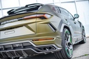 Цвет был более тёмный зелёный. Тормоозные суппорта были красные. Патрубки были трапециевидной формы, по одному с каждой стороны. Форма типа как у S-class AMG. Внутренняя поверхность патрубков была красной. Но в итоге автомобиль вроде как немного светлее, с зелёными суппортами и вроде как стоковыми патрубками. Но, и так сойдёт. Такой вот первый в мире тюнингованный Lamborghini Urus. Это касается первого, зелёного экземпляра. Он отправился к заказчику в РФ.