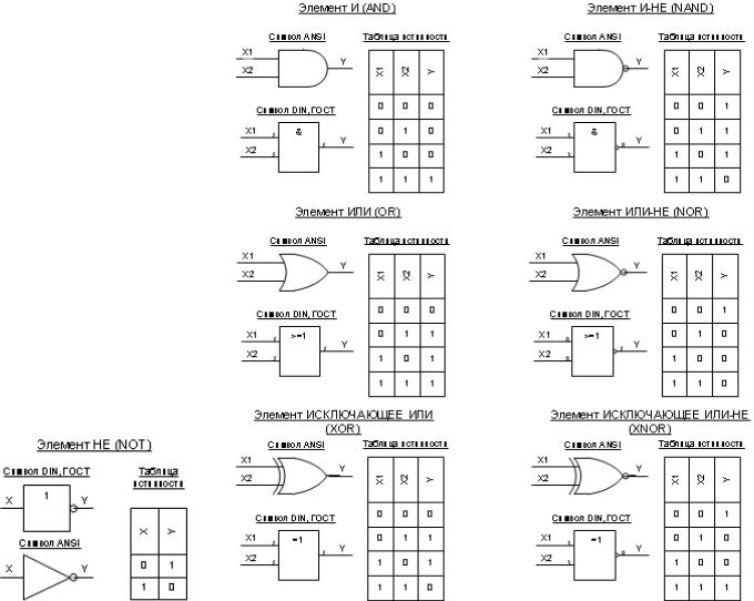И | ИЛИ | XOR | НЕ | NAND | NOR | XNOR