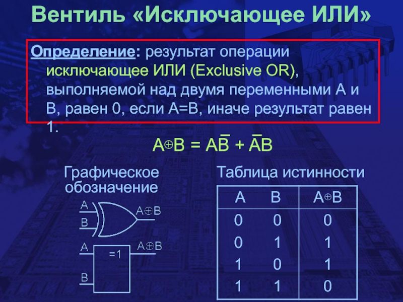EX-OR и его таблица истинностиЭлемент Exclusive-NOR