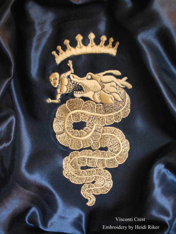 Что касаемо коронованной змеи, то это фамильный герб аристократического рода из Италии, жившего в республике Пиза в середине XII века. Судя по гербу, многие из этого рода были приближены к Королевским особам.