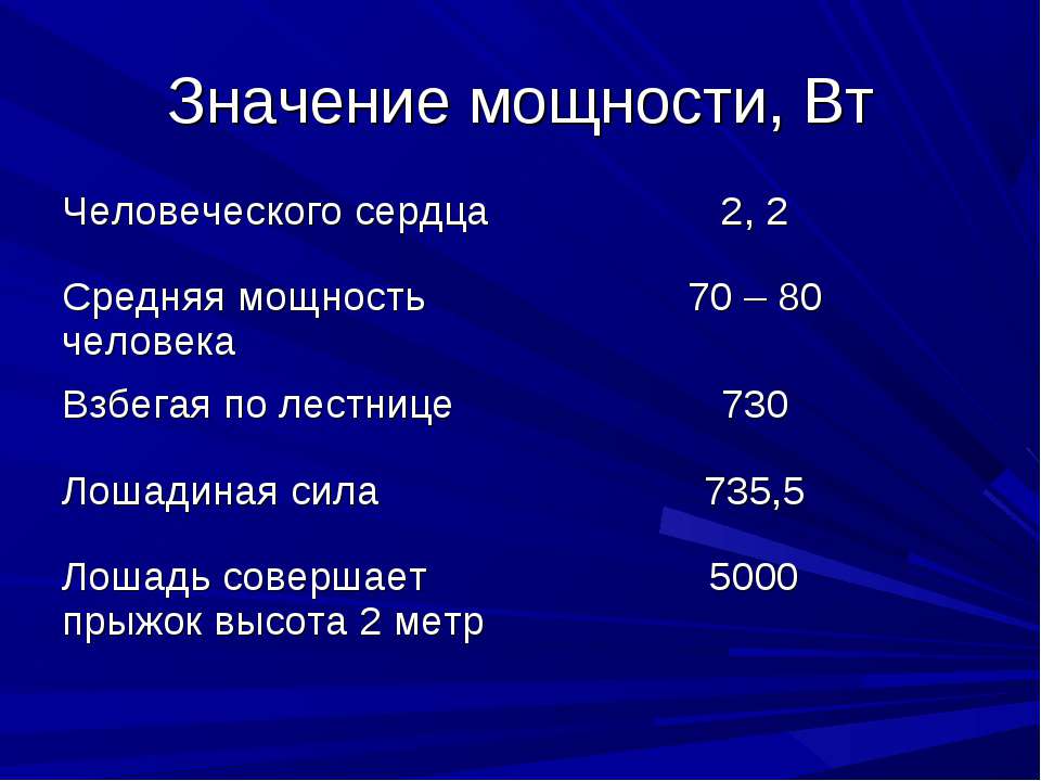 Пересчитывая мощность на кВт по формуле перевода получают следующие значения: