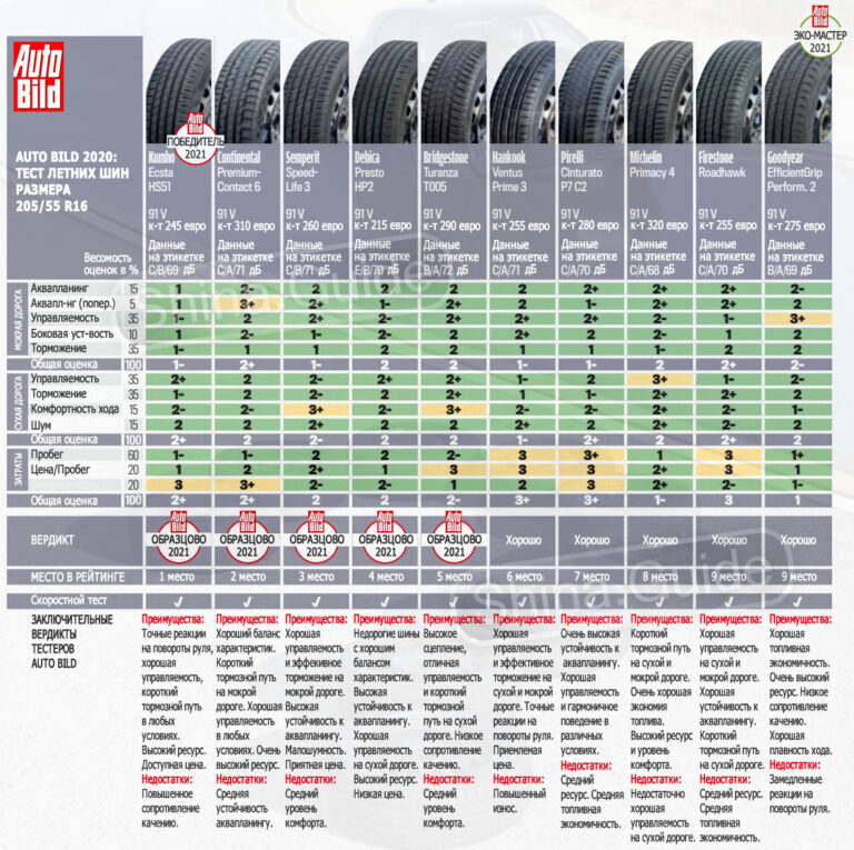- Автобилд — популярный немецкий журнал, посвященный автомобильной тематике. Каждый год эксперты рассматривают сотни летних, зимних и всесезонных шин различных размеров;
