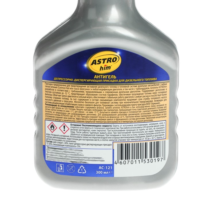 Стоит обратить внимание на Астрохим. Состав создан отечественными специалистами. Он недорогой и прекрасно справляется со своими задачами. Средство содержит спирты, благодаря чему мотор может запуститься даже с летним дизелем при температуре до -50 градуса по Цельсию. Оно также улучшает качество зимнего топлива.